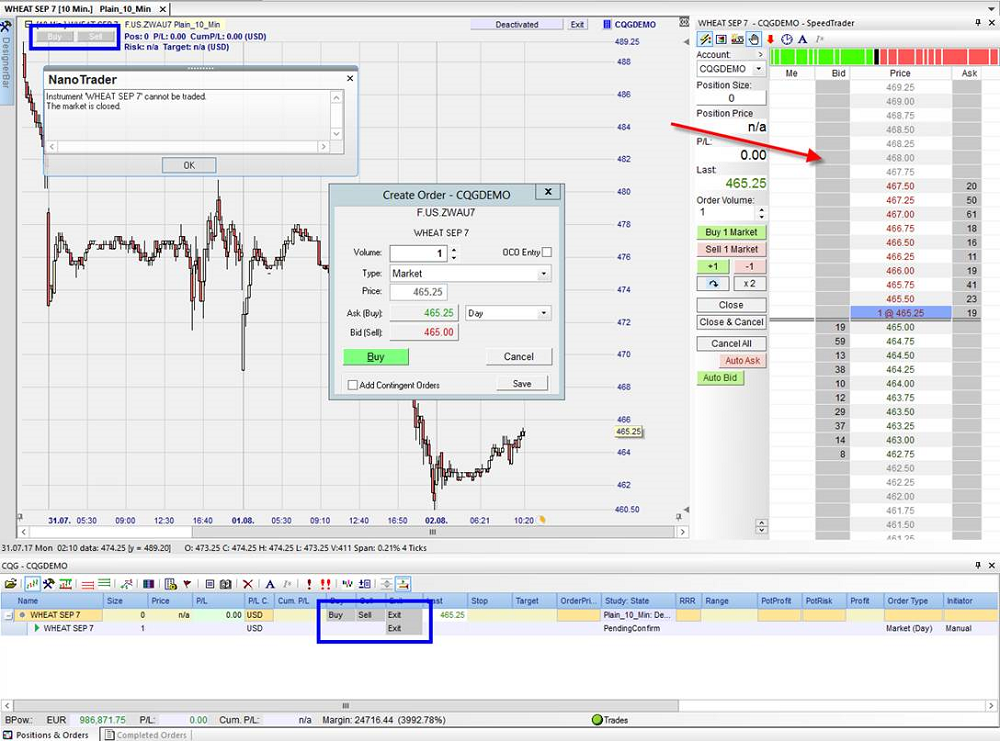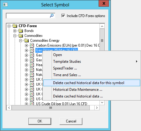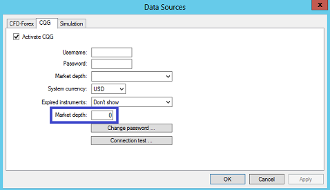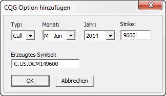 Um diese Funktionalität zu nutzen, müssen historische Daten von CQG aktiviert sein.