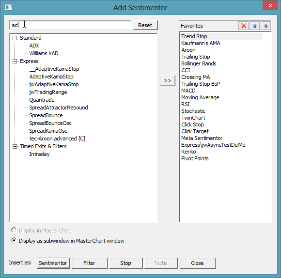 - neue Taktik (in Express implementiert) "MA_TrailStopTactic". Diese setzt den Stop mit einem Versatz zum Moving Average und stellt sicher, dass der Stop immer nur enger werden kann.