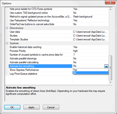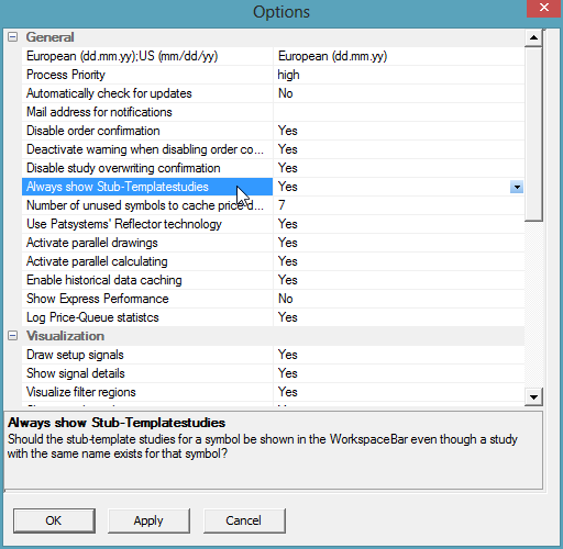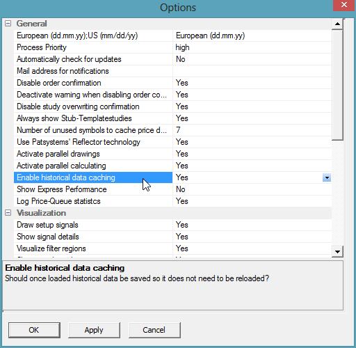 - Neue Visualisierungsoption unter Extras|Optionen: "Kerzenrand immer dünn". Falls aktiviert wird der Rand von Kerzen auch dann dünn gezeichnet, wenn die Kerzen aufgrund des Zooms sehr groß werden.