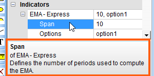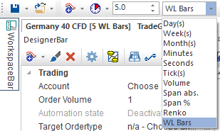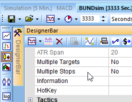 - Änderungen von Indikator-Parametern in der DesignerBar und im Chart, die über die Pfeiltasten oder das Mausrad vorgenommen werden, werden sofort im Chart übernommen