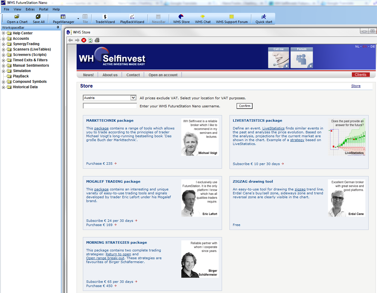 - Neuer Favoriten-Ordner der ArbeitsplatzLeiste ermöglicht einfachen Zugriff auf die meist genutzten Instrumente