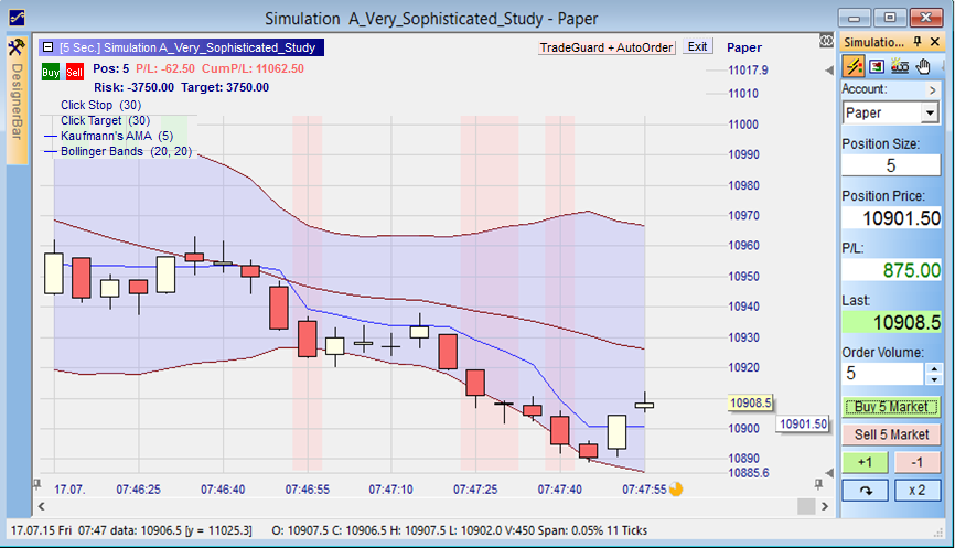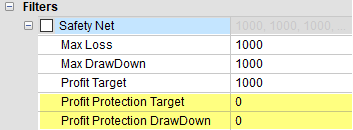 Der neue Filter "Safety Net" ermöglicht die Überwachung der P/L-Entwicklung von Studien, die im AutoOrder-Modus handeln. Sobald ein definiertes Kriterium wie maximaler Verlust, maximaler Drawdown oder Gewinnziel erfüllt wird, verwirft das "Safety Net" alle weiteren Signale der Studie und stellt ein evtl. vorhandene Position glatt. Für Details siehe die Online-Dokumentation zu "NanoTrader - Handelssysteme", Abschnitt 10.12.