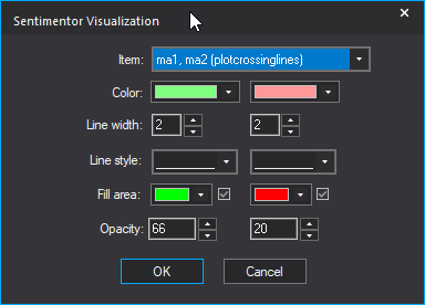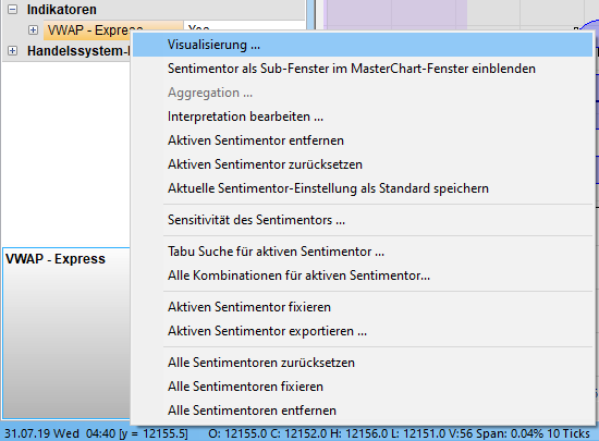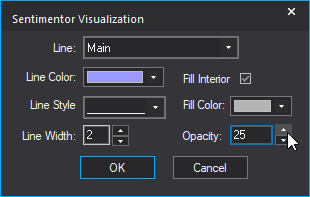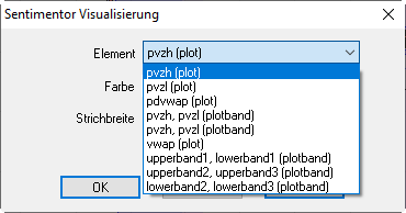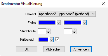 - BollingerBands, HighLow-Channel und ChannelBreakout werden nun mit einer Füllfarbe dargestellt. Über Visualisierungs-Einstellungen der Sentimentoren kann dies konfiguriert werden.