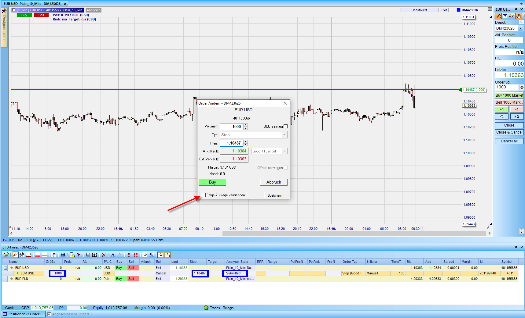 ist ideal dafür geeignet, einen erwarteten minimalen-Profit so schnell wie möglich sicherzustellen. Durch das Trailing kann anschliessend die Kursbewegung noch weiter ausgenutzt werden.