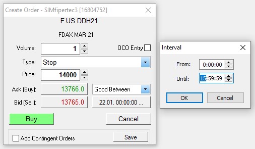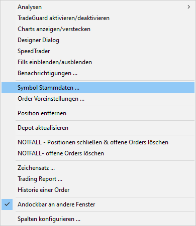 - Der Order-Erzeugen-Dialog zeigt in der Titelzeile das Konto an, über das gehandelt wird.