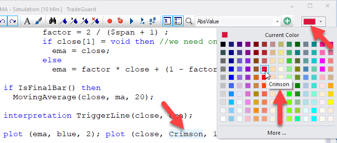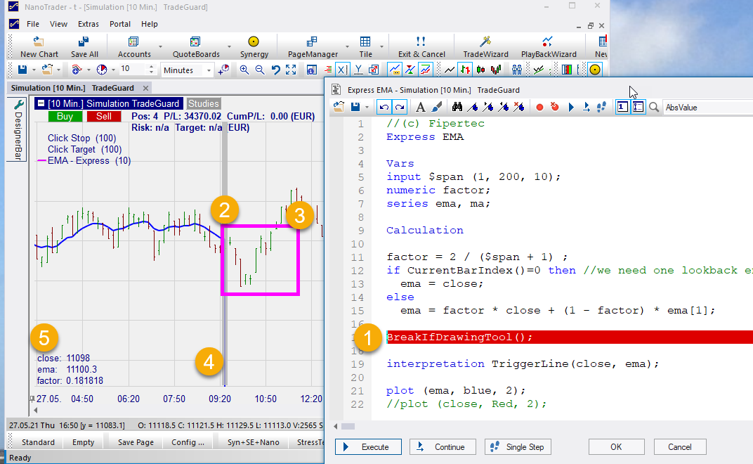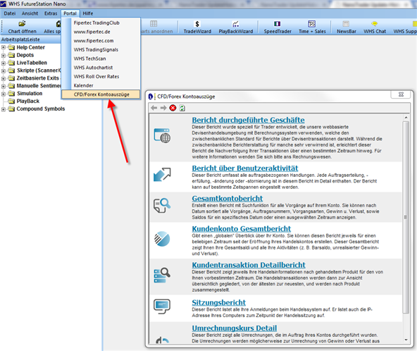 - Eine genaue Beschreibung finden Sie im "Charting und Trading-Handbuch", Abschnitt 6.16, das über das Hilfe-Menü aufrufbar ist.