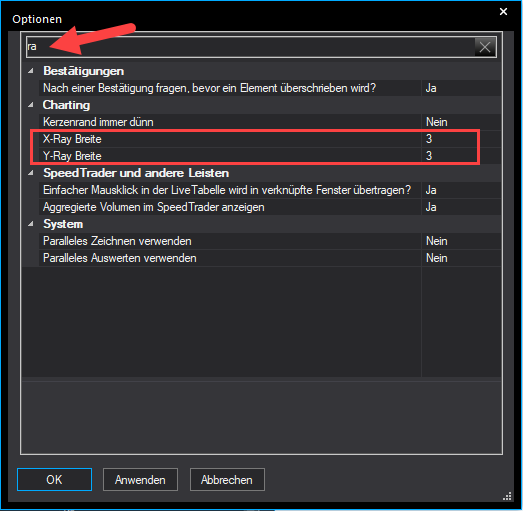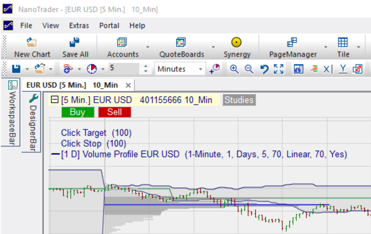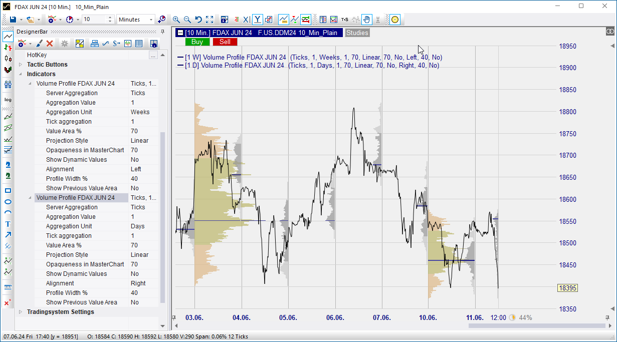 Das angezeigte Volumen ist genau und wird nicht aus der im MasterChart eingestellten Aggregation abgeleitet. Stattdessen basiert es immer auf den an der Börse ausgeführten Trades. Es gibt zu beachten, dass ein aktivierter Handelszeitenfilter nicht berücksichtigt wird.