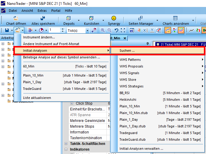 - Initial-Analysen können über ihren Namen gesucht werden. Der Eintrag "Suchen ..." ist in allen Menues enthalten, über die Initial-Analysen ausgewählt werden können.