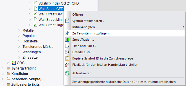 Um neue Favoriten hinzuzufügen, können Sie Instrumente in den Favoriten-Ordner der ArbeitsplatzLeiste ziehen. Alternativ klicken Sie einfach mit der rechten Maustaste auf ein Instrument und wählen "Zu Favoriten hinzufügen" im Kontextmenü.