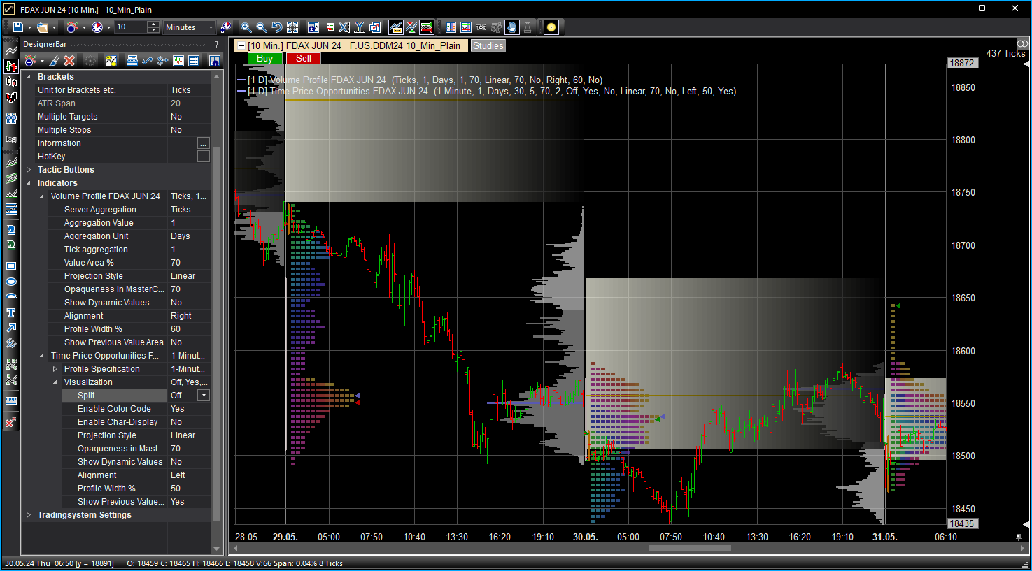 Der Indikator "Time Price Opportunities" hat dieselben drei neuen Optionen erhalten wie der Indikator "Volume Profile", "Alignment", "Profile Width %", and "Show Previous Value Area".