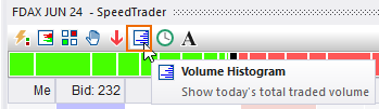 Für über CQG verfügbare Instrumente kann das für den aktuellen Tag gehandelte Volumen im SpeedTrader angezeigt werden: