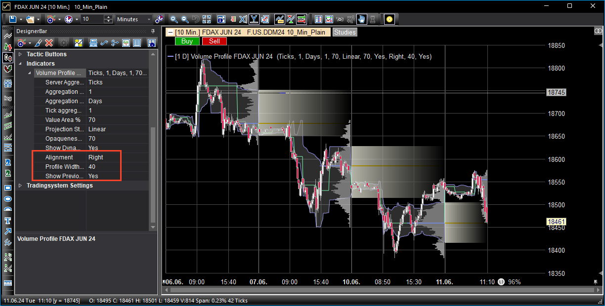 Wählen Sie, ob das "Volume Profile" links- oder rechtsbündig angezeigt werden soll.